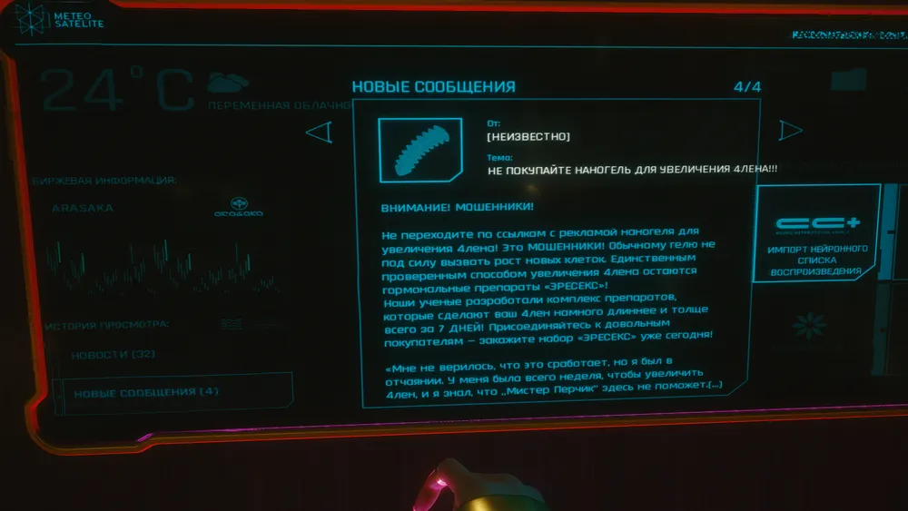Но не смотря на все проблемы, Cyberpunk 2077 удаётся главное — игра реально погружает в атмосферу будущего, полного высоких технологий и жестоких корпораций, под башнями которых обычные люди пытаются свести концы с концами. Передать тот самый принцип «High tech, low life», заложенный в «Нейромансере» Вильяма Гибсона и настолке Майкла Пондсмита у CDProjektRED определённо получилось.