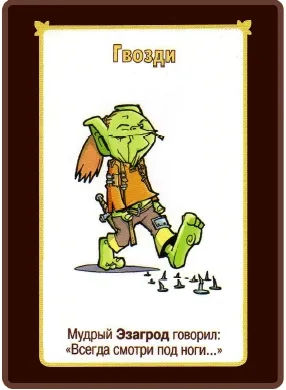 По пути я, кстати, наступил на гвоздь, - Зеленый жалобно всхлипнул и показал Владыке рассеченную ступню и рисунок гоблина, наступающего на гвозди: