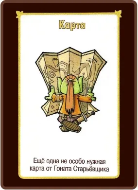 - ... ммм.. Он сказал что мы должны придти к Гонату Старьёвщику и потребовать у него карту, для Вашего Величества, на которой указан путь к тем местам, где хранится нужная вам вещь. - гоблин показал ещё одну карточку Ригору: