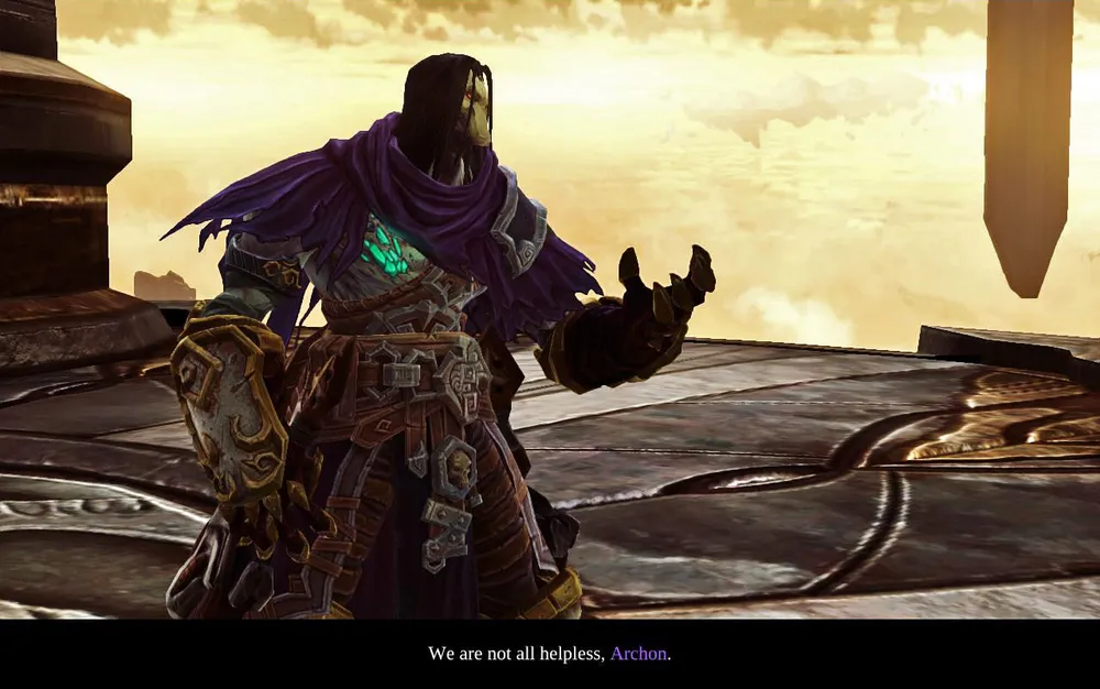 Итак, пока бронированный Война пытается разобраться в причинах преждевременной гибели всего человечества, новый герой, Смерть, намеревается реабилитировать брата и возродить безвременно почивший род людской. Сюжет здесь, впрочем, весьма условный, и получив краткую вводную от очередного ключевого персонажа, Смерть с головой и надолго погружается в проблемы помельче – как добраться вон к тому уступу и как порешить вон того босса. Не спорю, в игре прибавилось диалогов, и с некоторыми NPC можно обсудить их прошлое и настоящее (просто перебирая доступные темы разговора), но в глобальном плане они ничего не значат и служат лишь для придания целостности окружающему миру.
