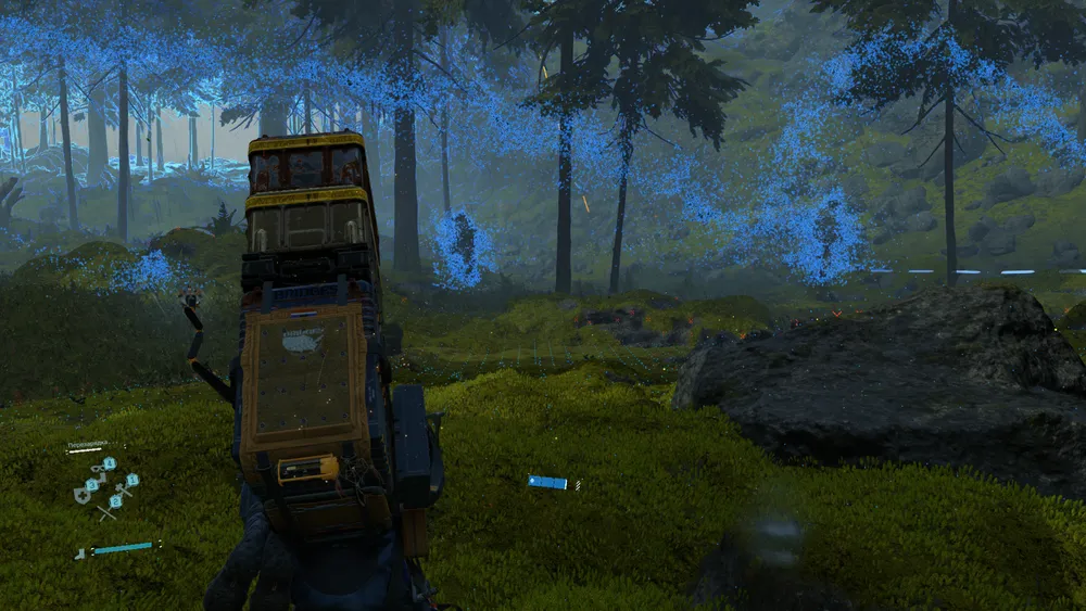 Для обнаружения труднодоступных мест рельефа используется специальный сканер местности, который подскажет где более безопасный маршрут. Помимо этого сканер показывает оставленные грузы и ресурсы. А еще он определяет силуэты Тварей.