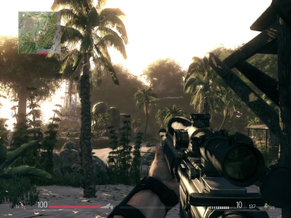 Однако без весомых "подводных камней" не обошлось, и в данном случае их как минимум два (не считая сюжета, который тоже вызывает подозрения) – это ИИ противников и стелс-механика. С ИИ всё просто – он плохо запрограммирован. Противник порой ведёт себя чрезвычайно глупо. Услышав хруст ветки в соседних кустах, он может начать крутиться на месте, но в итоге ничего так и не сделает. Со стелс-механикой несколько сложнее, ИИ тут замешан в той же мере. Порой нас не замечают с 10-ти метров, когда мы в маскхалате цвета местной листвы (тёмно-зелёном) ползём по песку (зато замечают за камнями, которые на метр дальше – честное слово!), а порой видят в 15х15 сантиметров прорезь среди листьев и веток с доброй сотни ярдов. Я три раза бесславно погибал, пытаясь понять, откуда меня замечают. И знаете, что выяснил? Проще всех перестрелять подобру поздорову. Тихо, но перестрелять. Всех. Ибо местный стелс порой не понятен абсолютно – иногда прощает грубые ошибки, а порой карает за излишнюю осторожность. В случае чего доставайте пистолет – одна-две пули уложат любого противника с близкого расстояния. Тут реализм соблюдён.