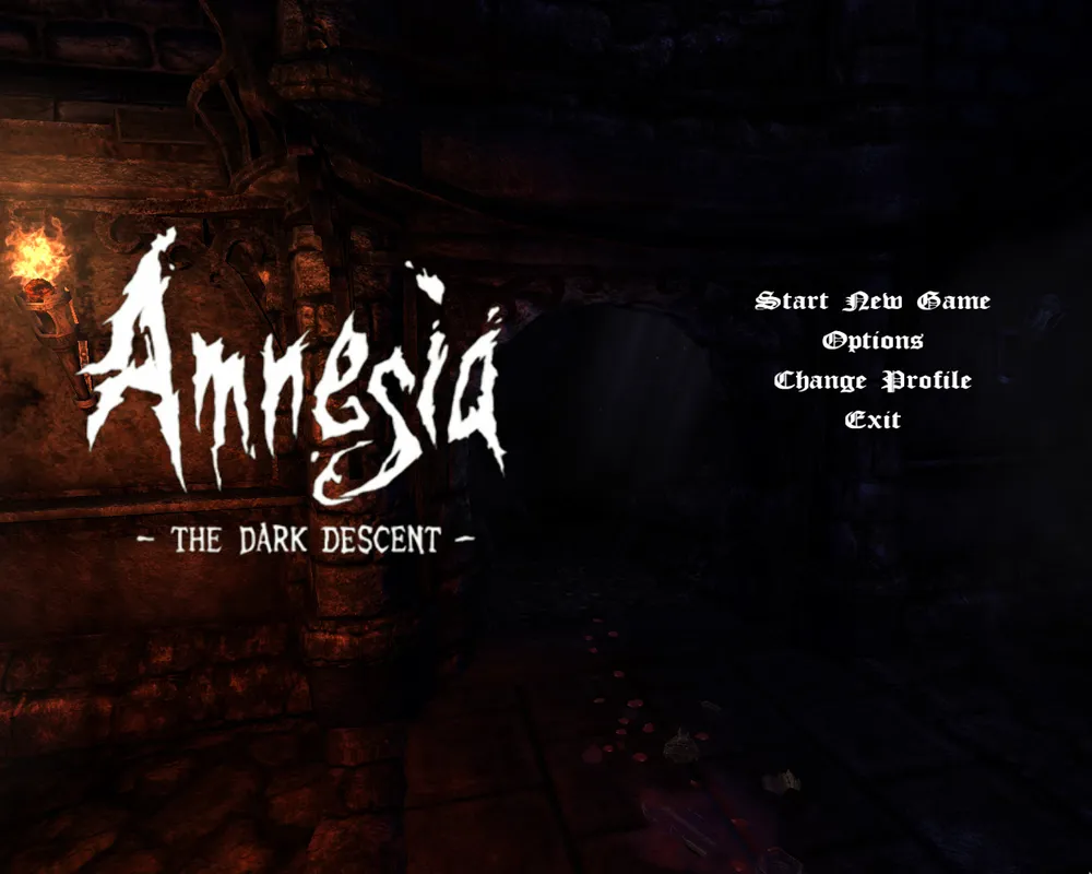 Загрузка закончилась, установка завершенна и вот заветный значок под названием Amnesia Demo. Включать или не включать - вот в чём вопрос! Любопытство было в 10 раз мощнее и я запустил игру. Небольшая заставка с логотипами разработчиков и вот перед нами вступление. Увы всё на английском. Для начала нас просят настроить гаму на мониторе - делайте как можно тусклее. И вот перед нами главное меню