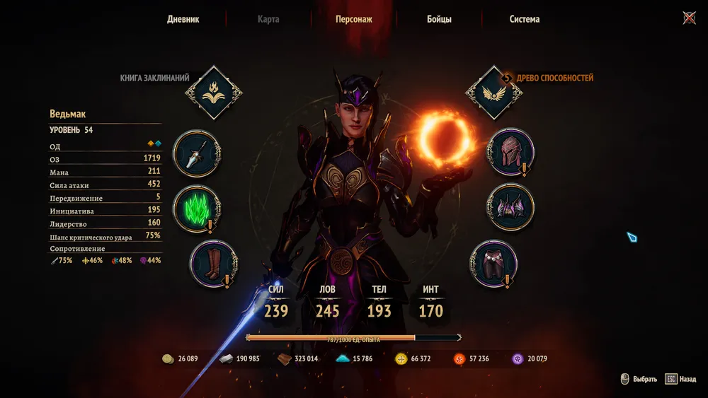 А что наша главная героиня? Я уже говорил, что выбрать героя нам не дадут? Авианна будет с нами от начала и до конца. С повышением уровня она получает очки опыта, распределить которые мы вольны между умениями воина, нефелима (маг-воин) и мага. На пятнадцатом уровне героиня получает дополнительную специализацию. Некоторые умения требуют соответствующей репутации у фракций, а если вы репутацию вдруг теряете… то умение сбрасывается, возвращая вам однако потраченное очко навыка. Я развивал ветку нефелима, которая, на мой взгляд, обладала самыми крутыми способностями и пассивками. Играть за мага, по крайней мере в первый раз, слишком непредсказуемо — ты не знаешь когда у тебя появится достойное заклинание. Кстати, магию можно колдовать только в бою — на карте приключений магия не доступна.