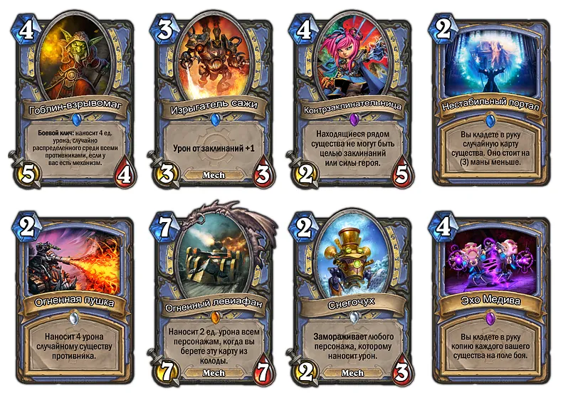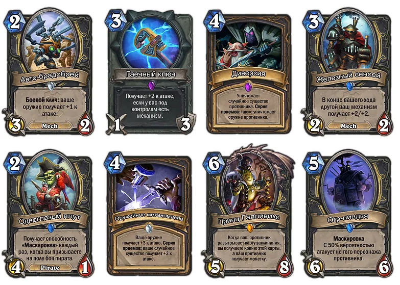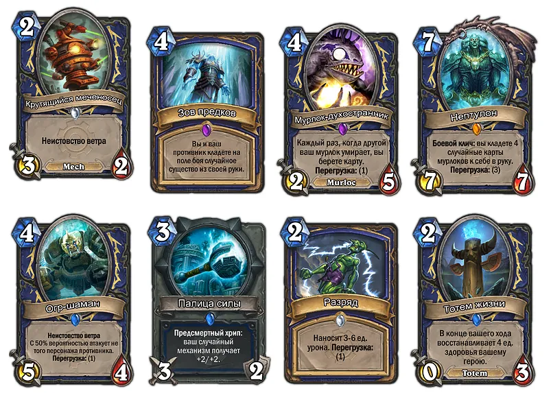 Зато необычные карты у шамана идеальны. Сами взгляните - большой точечный урон за две маны, да еще и с перегрузкой и 3/2 механизм с неистовством ветра.
