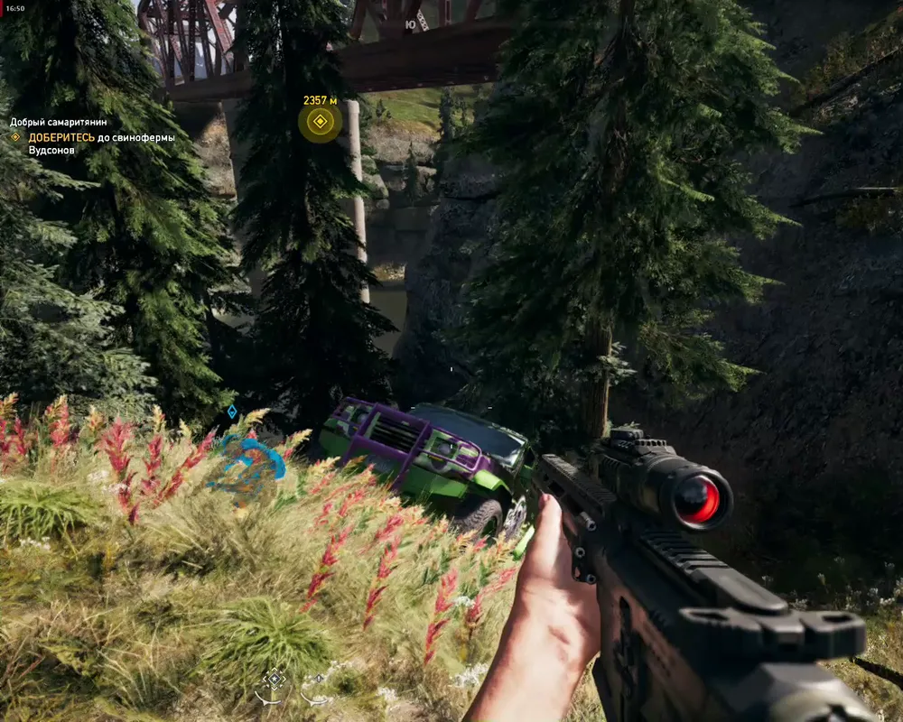 Теперь вам, единственному из отряда, кто остался на свободе, предстоит всё исправить. И сделать это вы сможете, только заручившись поддержкой местных жителей, которые не побоялись сопротивляться и сумели выжить в противостоянии. Поэтому придётся выполнить немало их поручений — наладить связь, освободить важные объекты, уничтожить конвои с припасами. Каждая миссия приближает вас к личной встрече с Иосифом и остальной семейкой Сидов, стоящей во главе эдемщиков. Ой, медведь дорогу перебегает! Сейчас я его быстренько...