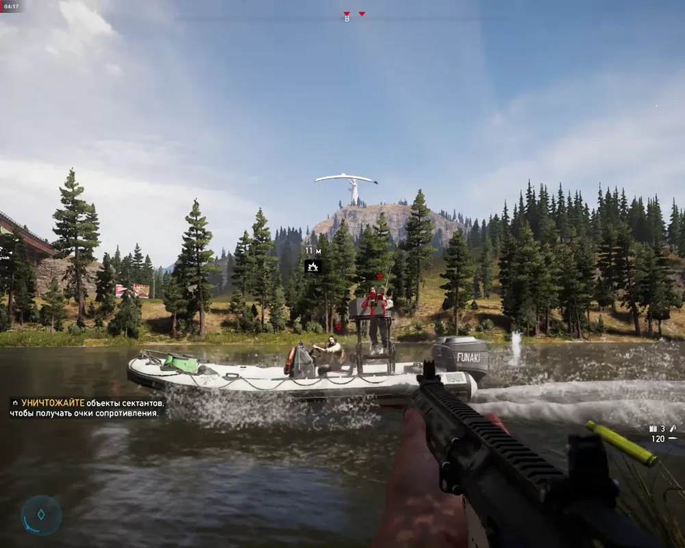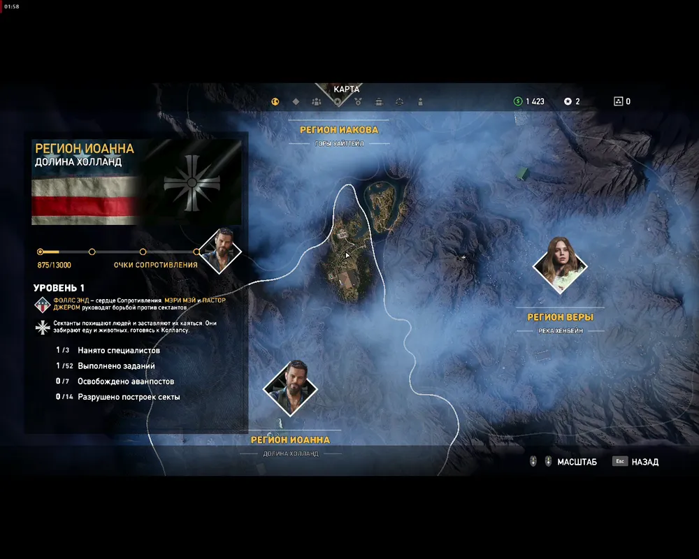 Что касается сюжета, он именно таков, каким предстаёт в трейлерах о семействе Сидов. «Отец» и три его «генерала» невероятно харизматичны и каждый — «Солдат» Иаков, «Креститель» Иоанн и «Сирена» Вера — получит возможность прочесть вам проповедь и раскрыть себя. Единственный спорный момент — это то, что продвижение по сюжету связано не с выполнением миссий как таковых, а с прогрессом по «очкам сопротивления». Набрали достаточно — получаете сообщение: мол, за вами уже выехали, и не успеете оглянуться, как словите дротик со снотворным.