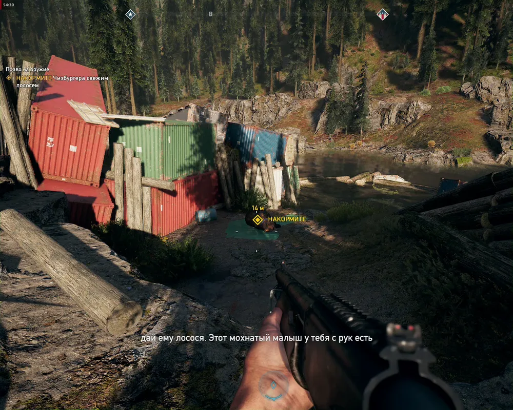 Упомянутые тайники — это местные головоломки, и по духу они ближе всего к адвенчурам. Где-то нужно достать ключ из запертого сарая, где-то воспользоваться кошкой (которая крюк, а не пума-напарник). Ничего сложного, но приятно, когда в шутере возникает необходимость слушать, что вам говорят, и читать инструкции в заметках «выживальщиков».