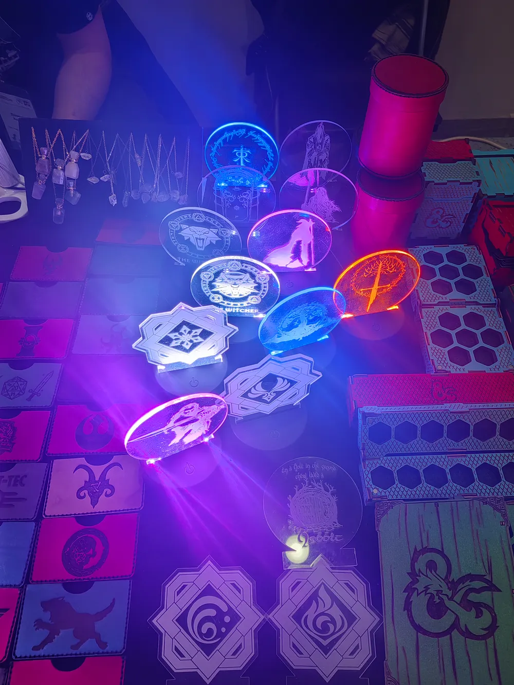 Вот такие светящиеся эмблемки подвезли ко второму дню.