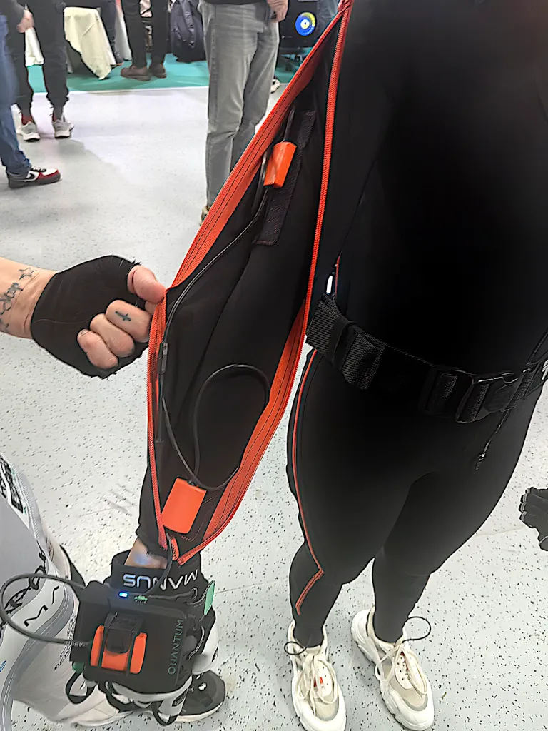 И ещё на одном стенде было представлено оборудование для захвата движений от компании Mocap Tric. Представлено оно было так сказать в рабочем состоянии — на стенде специально обученная девушка в костюме для захвата движений проделывала эти самые движения и на экране можно было видеть, как именно всё передаётся в компьютер. Причём помимо движений тела, которые считываются по положению датчиков в костюме, установленные на голове камеры также считывают мимику лица.