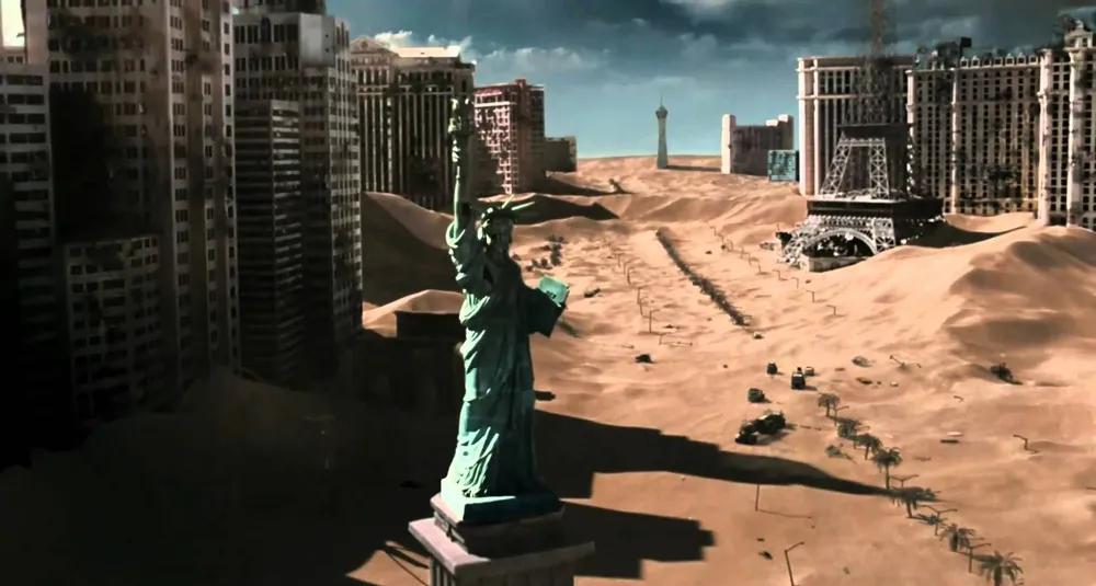 Пожалуй, лишь радиоактивный Лас Вегас создателям фильма удалось сделать с более-менее выраженной индивидуальностью. Руины вычурных зданий, когда-то заманивавших туристов, пришедшие в негодность автострады, выплывающие из тумана останки гигантских статуй.