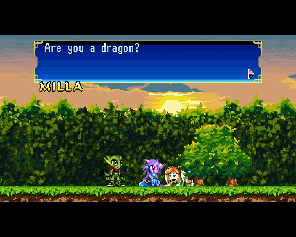 Две подруги, девушка-дракон Лайлак и девушка-кошка Кэрол отправляются посмотреть, чего это по долине разлетались всякие истребители. И ещё после второго уровня к команде присоединится девушка-бассет Милла, которая станет третьим играбельным персонажем.