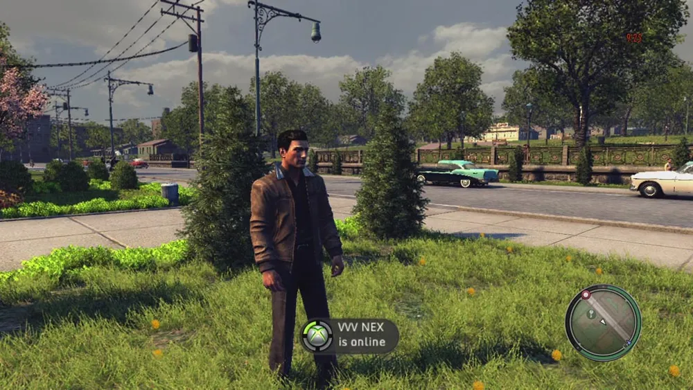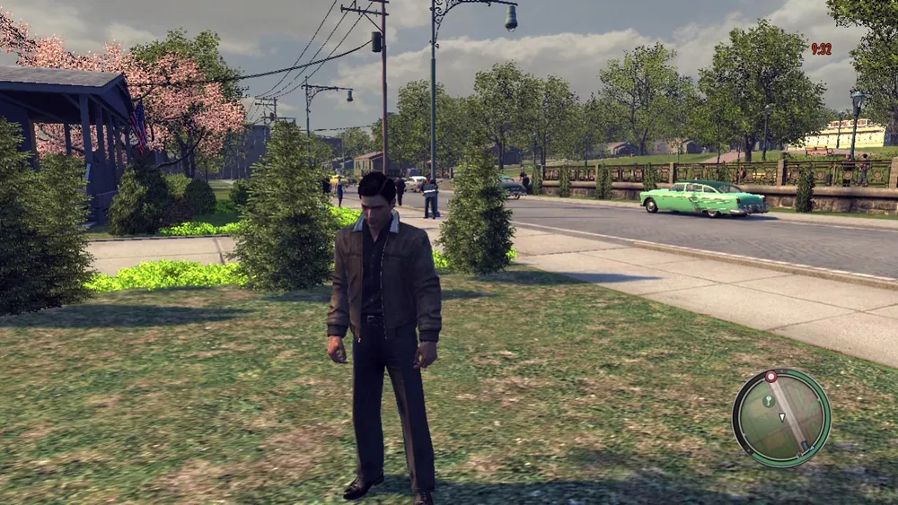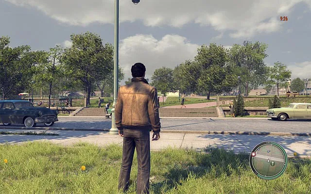 Первое, что я заметил, так это низкое качество отображения SSAO (имитация глобального освещения). Тени от умывальника и туалета при ближайшем рассмотрении рассыпаются на темные спрайты, а это просто отвратительно. "Ладно, бывает и все можно простить...", подумал я, и вышел из домика Витто. Там стало еще страшнее: пониженное разрешение, отсутствие какого-либо сглаживания, периодические проседания частоты кадров до ужасного уровня, исчезающая трава и тени, если вы отойдете на пару метров от них. Люди и фон превращаются в большую смесь пикселей, если вы захотите проехаться на машине. В самих зданиях еще неплохо, они как маленькие островки жизни. Ты заходишь в какой-нибудь магазин и немного расслабляешься от увиденного.