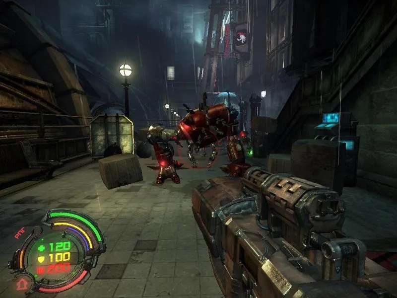 В Hard Reset есть все, что должно быть в киберпанк-шутере: честный полицейский, безумный ученый, армия роботов, мечтающая уничтожить все живое, и зловещий заговор. И ко всему этому атмосферу дополняют мрачные, разрушенные улочки, маленькие роботы, прячущиеся по углам и перебегающие с места на место, а также отличное музыкальное сопровождение.