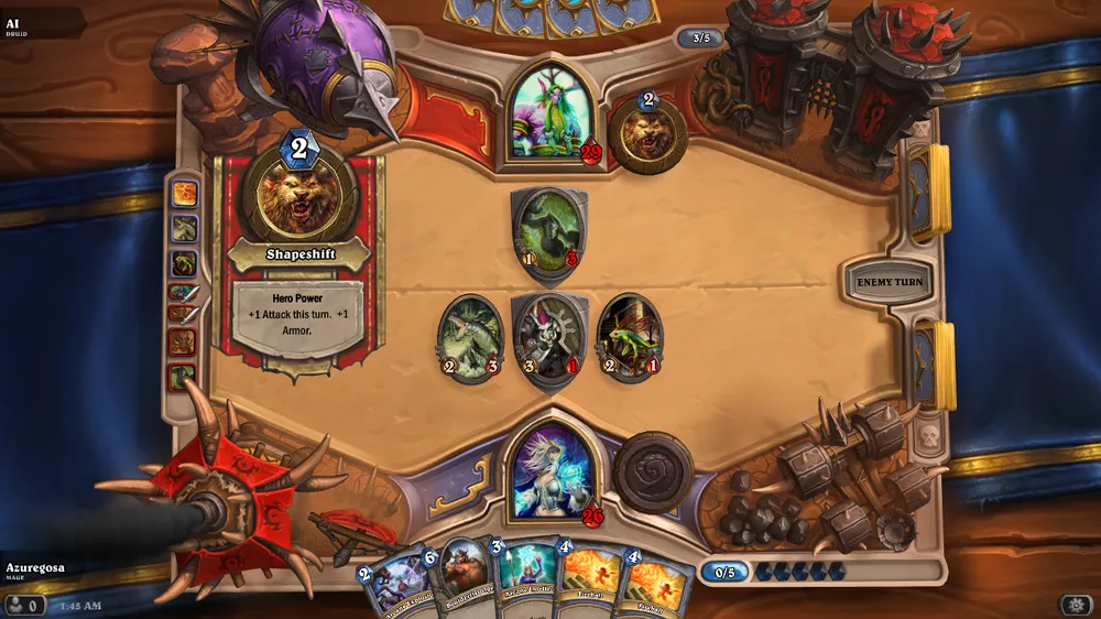 Герой - это не карта в колоде, а аватара самого игрока. У каждого героя 30 единиц жизни, и ваша цель - убить противника раньше, чем он убьет вас. Еще у героя есть уникальная классовая способность, которую он может применять раз в ход.
