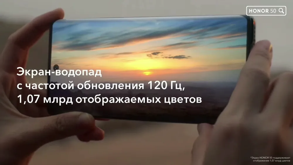 Хотя дизайн Honor 50 не так интересен, как у недавно презентованного Honor Magic, это всё равно стильный и удобный девайс. Экран точно также загибается на краях и захватывает боковые грани — Honor называет такой дизайн «водопад».