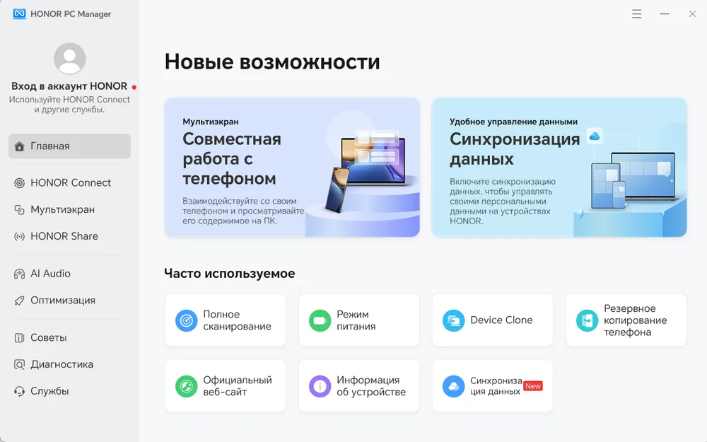 Как и в предыдущих моделях ноутбуков от Honor за большую часть настроек и функций отвечает встроенная утилита PC Manager. В частности через неё можно обновлять драйвера, переключать режим из «умного» (экономия заряда) в «производительный» (доступен только при работе от сети) и быстро делать резервное копирование файлов.