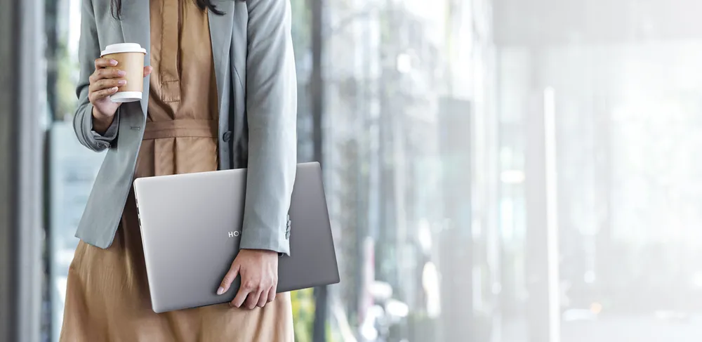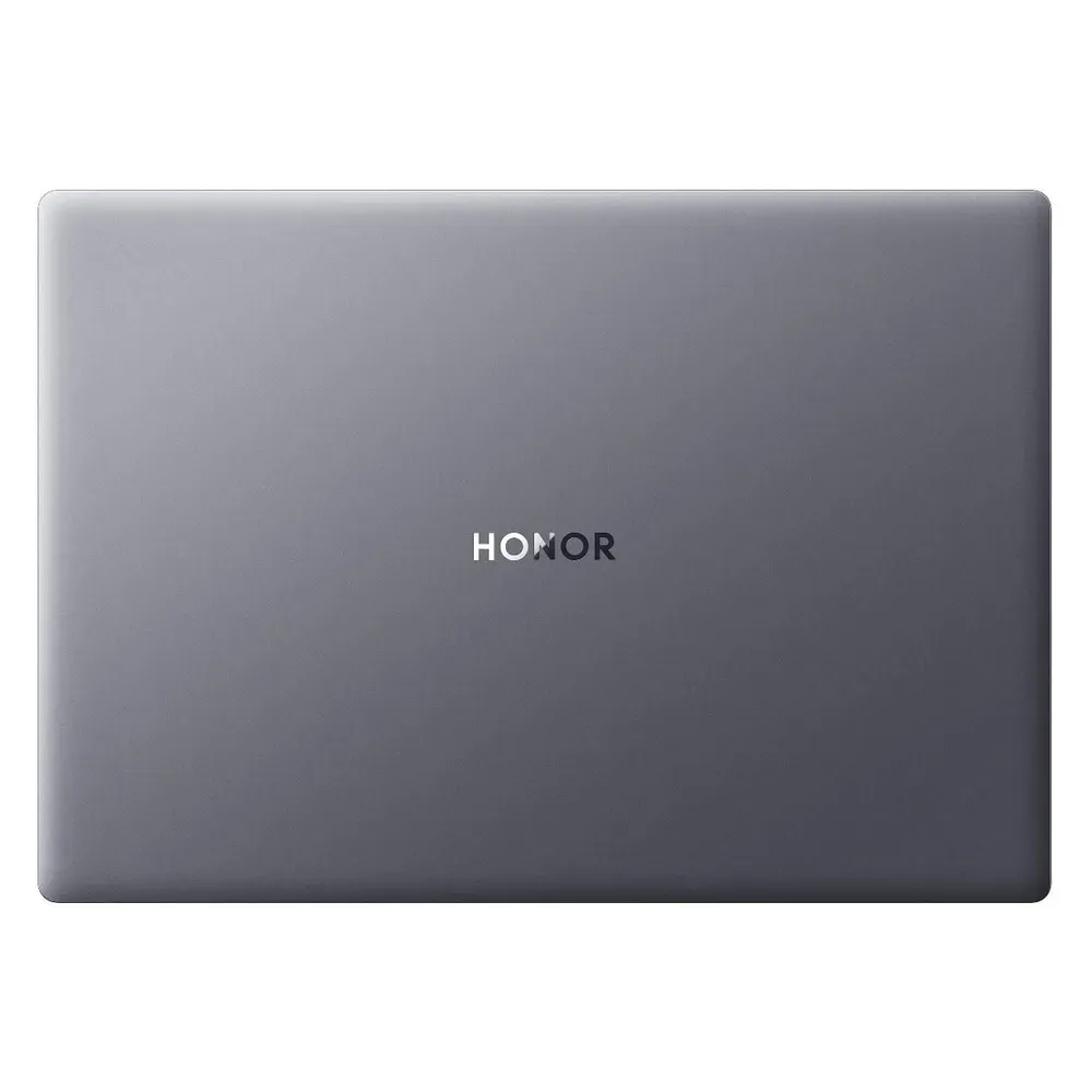 Что касается дизайна, то изменилось не очень много. У ноутбука всё такой же гладкий и тонкий корпус со скруглёнными углами. И без лишних украшений, если не считать надписи HONOR оттеснённой в центре крышки.