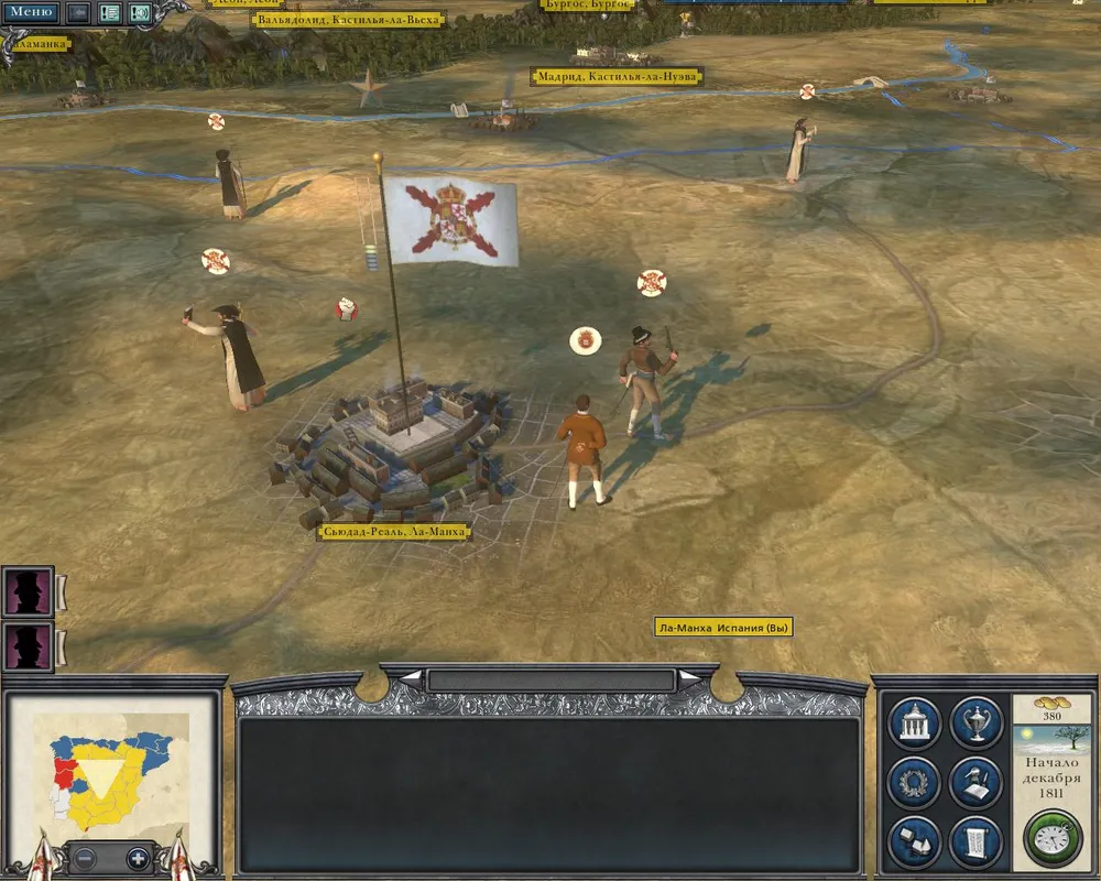 Игра за Испанию наиболее близка по духу к классической Total War-кампании. Окопавшись на двух клочках земли, мы должны восстановить дееспособную армию и постепенно отвоевать все утраченные провинции, включая Мадрид. Союзники атакуют врага вяло и неохотно, поэтому львиную долю очистных работ придется делать самостоятельно. Более того, часть жителей уже развращена французскими болтологами и будет вовсе не рада возвращению прежней власти. Словом, есть где разгуляться борцу за независимость.