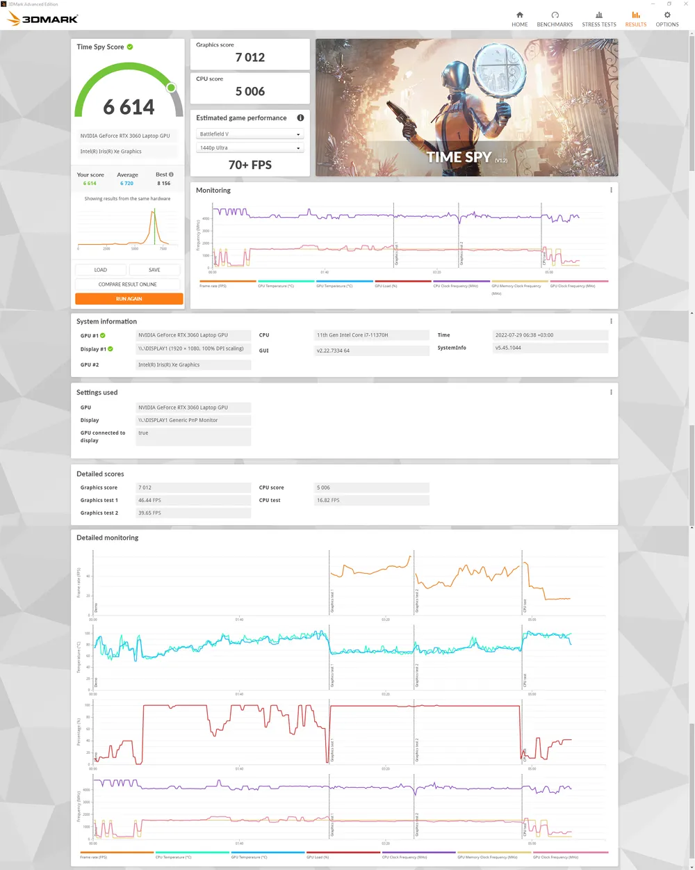 Скажу даже больше. Тот же Doom Eternal запускается с 60FPS только когда компьютер в режиме Turbo (доступен только при питании от сети). А при автономной работе частота кадров автоматически режется до 30. Впрочем, и заряда батареи вам хватит лишь на 29 минут. Так что автономно ноутбук вообще лучше не использовать. Даже за просмотром видео с YouTube он продержался 2 часа 28 минут.