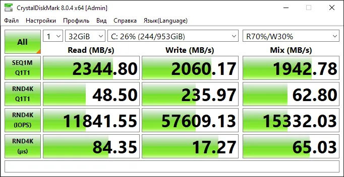 Время включения компьютера — 30 секунд, выключения — 19. Тут в целом никаких рекордов.