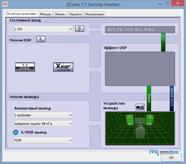 Гарнитурой можно управлять с помощью фирменного ПО. Здесь собран доступ к технологиям виртуального 7.1 звука и эффектам микрофона. Настроек достаточно.