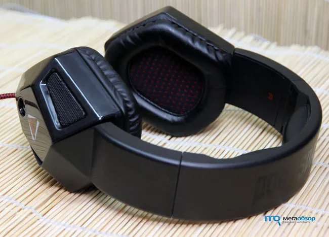 Амбушюры из кожзама с мягкой подкладкой, внутри красная ткань. Уши запотевают при длительном использовании, это особенность такого материала.