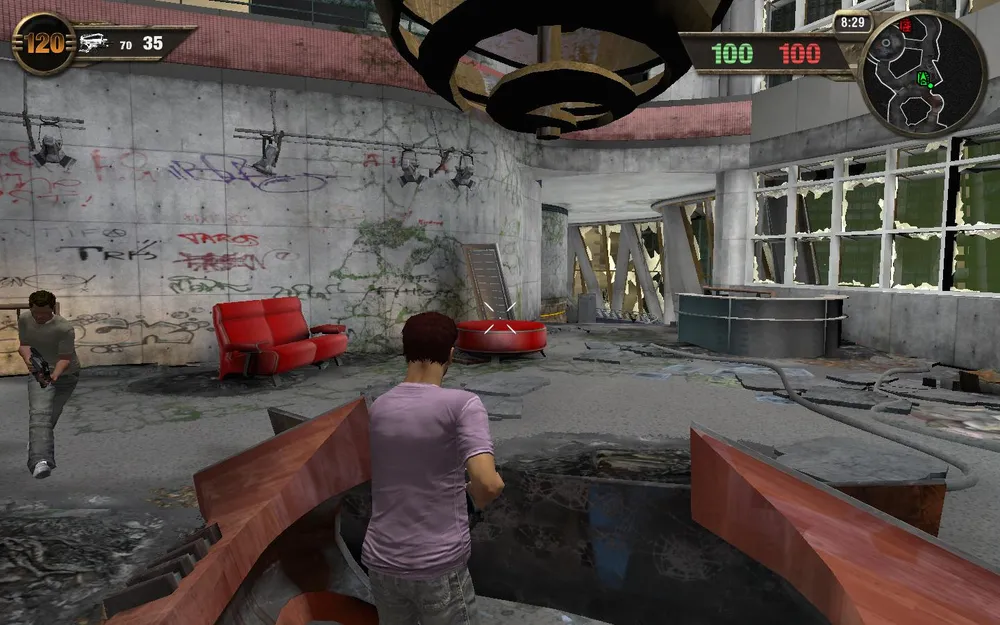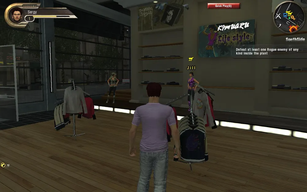 Потом мы попадаем в город, общее впечатление – WoW, только стрелялка. В городе есть телефон, почта, торговцы(в том числе и одеждой), NPS, дающие разные задания. Ну и естественно персонажи, после разговора с которыми мы отправляемся на арены(проще говоря начинается стрелялка.)