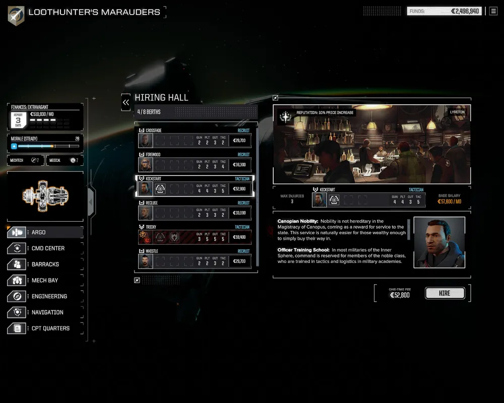 Члены вашего экипажа — полностью проработанные персонажи со своими историями. Навигатор Сумира Майер, техник Ян Виртанен, бывший лидер команды Дариус Оливера, который передал вам свой пост, сосредоточившись на поиске контрактов.