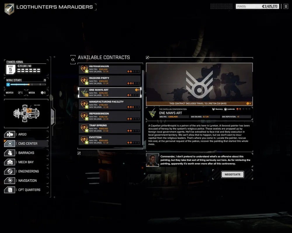 Переговоры при заключении контрактов, уход за мехами и различные решения при случайных событиях позволят вам почувствовать себя настоящим командиром наёмников.