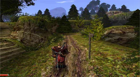 Если же вам надоест выполнять различные задания, либо бегать туда сюда от города к поселению или монастырю – просто выйдите за город и отойдите с тропы в сторону. Там вам и звери, и бандиты, и пещеры которые можно обыскать, старые развалины, речки, озёра, лес … да чего там только нет, можно просто погулять по миру любуясь закатами, ведь графика (на то время) была отличной.
