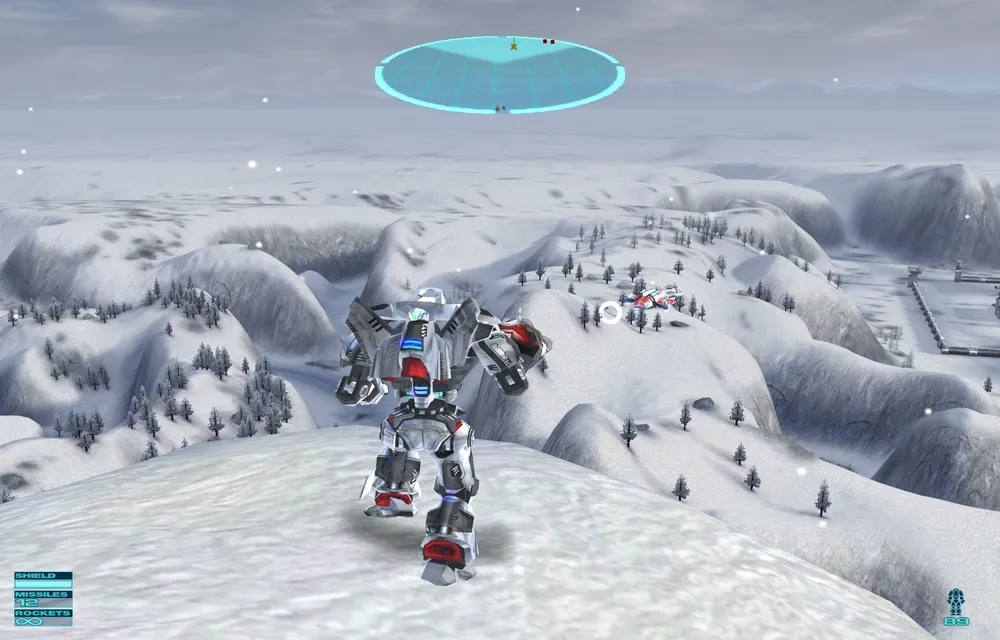 А здесь у нас мало того, что вы пилот, управляющий Очень Большим Человекоподобным Роботом, так ещё и этот робот по одному нажатию клавиши превращается в самолёт! Так что игра оказывается одновременно и авиа-аркадой.
