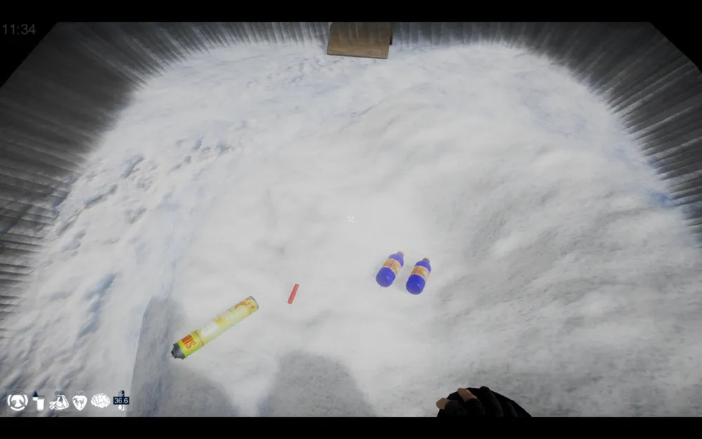 Исключение составляют бутылочки с соком, которые можно сразу подобрать не откапывая. Для того чтобы добраться до чего-то более габаритного, сначала придётся потрудиться и откапать обнаруженный предмет для чего используются руки, т.е. вспомогательных предметов искать не потребуется. При исследовании льдин внимательно осматривайтесь – тогда можно будет заметить небольшую часть занесённого предмета, который впоследствии пополнит Ваш инвентарь.