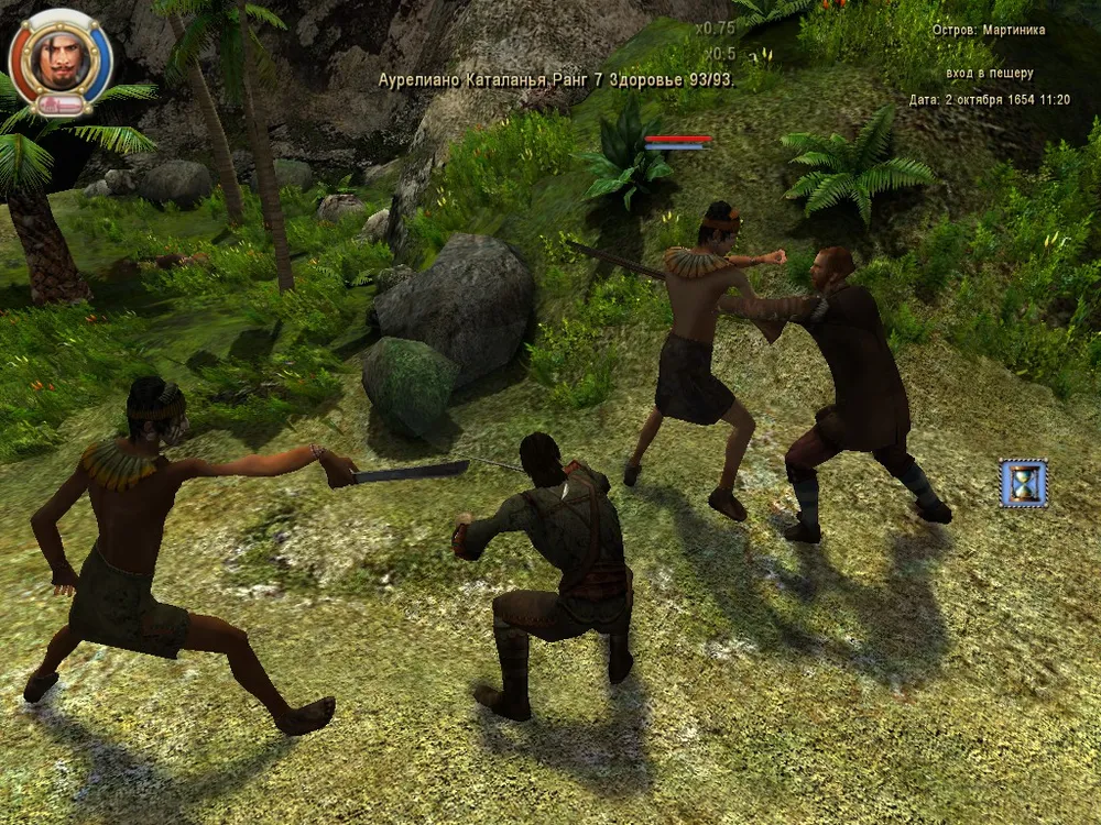После вступительного текста, рассказывающего о том, почему Шарль де Мор отправился на Карибы искать своего пропавшего сводного брата, мы оказываемся на острове Мартиника. И всё — никакой обучающей миссии или указаний что делать и как. Конечно, где-то в директории с игрой есть руководство, где разъясняются разные стороны игры, но прочитать его от корки до корки — процесс не быстрый. И всё равно некоторые нюансы игрового процесса приходится узнавать методом научного тыка.