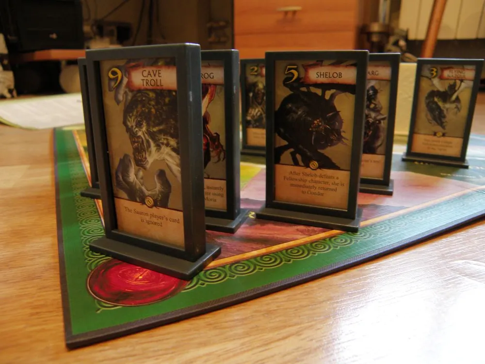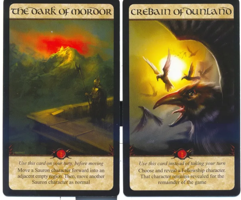 Подготовка к игре занимает всего пару минут и тут сразу же начинается блеф, тактика и собственно динамичное игровое действо. Партии непродолжительные ~40 минут, динамичные. Цели игры у сторон разные: Свету необходимо провести Фродо в Мордор
