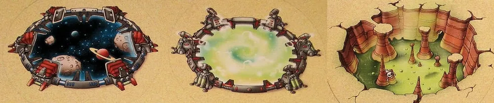 Первые два при попадании в них жуков "призывают" особые фишки (метеориты и варп-вихри), а при попадании в яму жук просто дохнет. Метеориты и варп-вихри вбрасываются на поле и при попадании на жуков противника производят сл. эффекты: