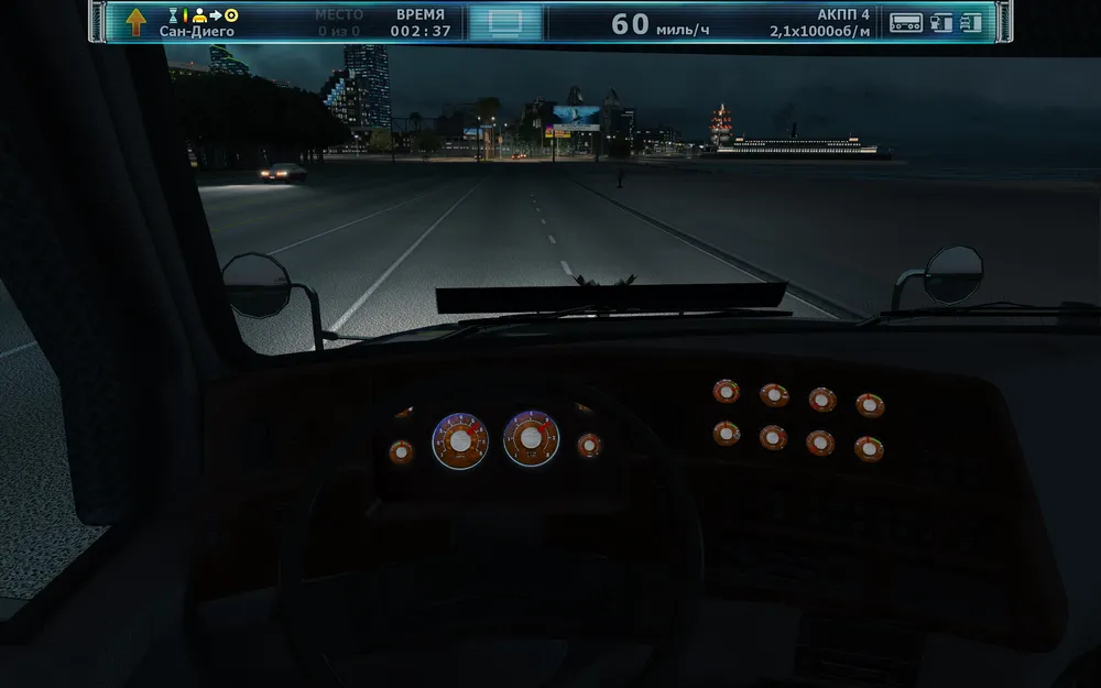 Впрочем, это не означает, что всю игру придется любоваться на замусоренные парковки для дальнобойщиков, унылые склады и загородные шоссе. Предназначенные для грузовиков трассы иногда пролегают близ города, а иногда прямо через него. Одним из таких мест является, например, Сан-Диего. Проезжая по нему, мы можем наблюдать выставочные центры, небоскребы, государственные учреждения и даже причал.