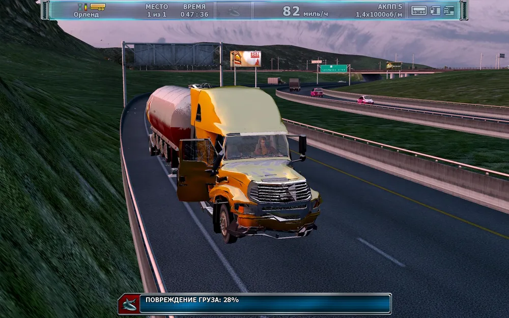 Интерес вызывают и дорожные эффекты - мокрая от дождя трасса, обещанный разработчиками «черный лед». Окружающие условия влияют на управляемость, разгон и многие другие параметры грузовика. Чтобы справиться с грузовиком, лучше всего использовать игровой руль, ведь на клавиатуре добиться чуткого управления без элементов «подруливания» крайне сложно. Необходимость в специализированном контроллере ощущается и на максимальных уровнях сложности, где надо быстро ехать и ловко уворачиваться от лезущих под колеса «чайников».