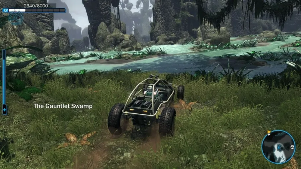 На протяжении всей кампании как за людей, так и за На’ви не оставляет подозрение, что в Ubisoft не один год делали масштабную MMOG, которую в последний момент, чуть ли не за месяц до релиза, перекроили в пребанальнейший сингл. Абсурд, казалось бы, но куда ни бросишь взгляд – всюду признаки полной многопользовательской готовности. Сама структура развития событий даже далекому от этих ваших «Вовок» покажется странной. Однотипные беседы и задания, нарочитая демонстрация призового опыта в конце диалога-брифинга, повсеместное «пойди-принеси-убей», знаки вопроса и восклицания над головами персонажей, неуместная прокачка, громадные локации и типичный набор физических ограничений выглядят как никогда странно при отсутствии даже намека хотя бы на кооператив, несмотря на то, что исправно пустующий мультиплеер зачем-то присутствует. Также странно, что по мере прохождения сохраняется статус персонажа, а не игра в целом, поэтому невозможно загрузить никакой сейв, кроме последнего, а в случае смерти происходит типично ММО’шный респаун, так что потерянное средство передвижения не появится, даже если чекпойнт был пойман в кабине багги. Сюжет же настолько невыразителен и прост, что болтовню можно пропускать без потерь, тем более что причина ее содержательности вовсе не в желании раскрыть всю трагедию повествуемой истории, а в том, что надо как-то удержать путешественника от молниеносного забега по наипростейшим миссиям.