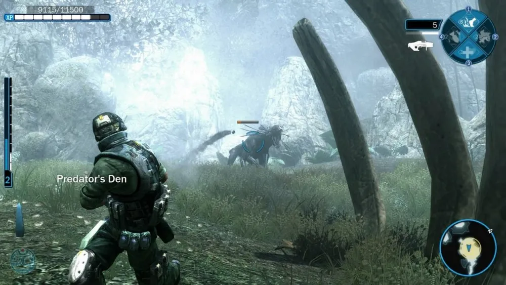 Самое досадное, что будь «Аватар» и вправду MMOG, был бы совершенно другой разговор. Здесь как раз и не хватает взаимодействия, не хватает случайных событий и многолюдности в человеческих лагерях и поселениях На’ви, нет масштаба и залихватских инстансов, торговцев, PvP-сражений – ведь сеттинг-то просто идеален для всего этого. Но нам даровали два унылых сингла в одной упаковке, где за землян проходить настолько просто, что лень, а за На'ви настолько скучно, что неохота. Пехотинец до зубов вооружен пушками, среди которых огнеметы, гранатометы, крупнокалиберные пулеметы и штурмовые дробовики. Он может сам ставить в определенных местах безлимитные генераторы боеприпасов, запрыгивать в огромных человекоподобных роботов и лихо уворачиваться в прыжке от челюстей и когтей почти любой твари.