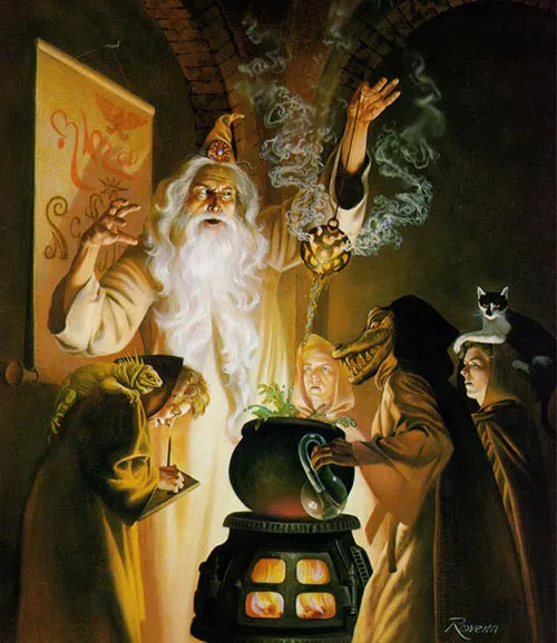 В глифе Прокаливания происходит превращение одного из четырех алхимических Элементов в Соль.