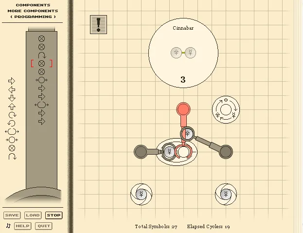 Мне хочется представить вам оригинальную и простую, логическую головоломку - The Codex of Alchemical Engineering (Старинная рукопись Алхимической Разработки). Эта онлайн-игра в стиле флэш является непосредственной предшественницей SpaceChem. В Спейсчеме были переработаны и дополнены "химические" принципы, заложенные этой игрой.