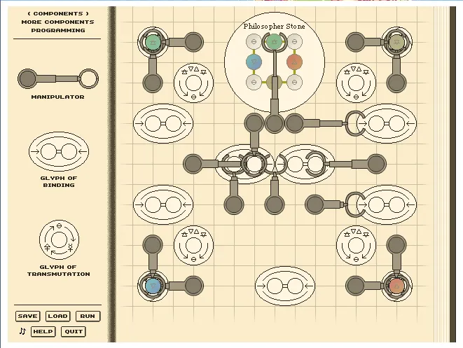 В этой "игре для инженеров" как называет её создатель, цель заданий заключается в синтезировании алхимических веществ с помощью собранного вами хитрого устройства, состоящего из манипуляторов и хитрых алхимических устройств – глифов, напоминающих тигли.
