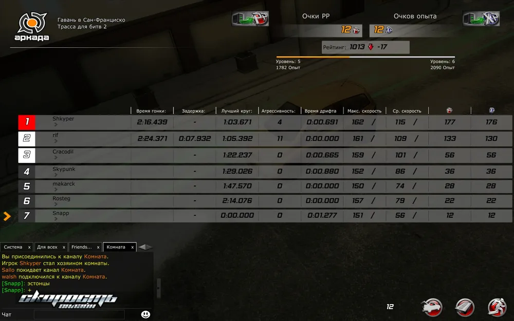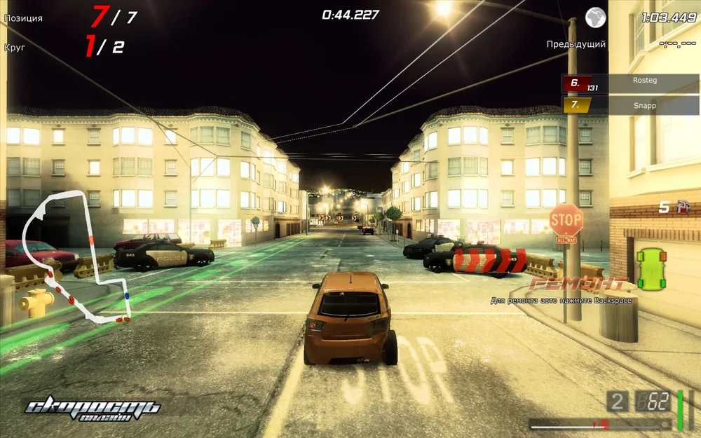 Важно заметить, что при загрузке присутствует окно магазина, в котором нам предлагают купить все, что нам поможет в гонке, это и мини карта, и азотный ускоритель, и указатели поворота, а также много и многое другое, купить можно все, если ничего не покупать, играть будит сложно. Вчера ночью я сделал 5 пробных заездов, в первом приехал третьим, в остальных первым и вторым. Тут я гнать не старался, да и игра заметно лагала, видимо на максимальных настройках играть мне не стоит. Загрузился я первым, но ждать надо было остальных.
