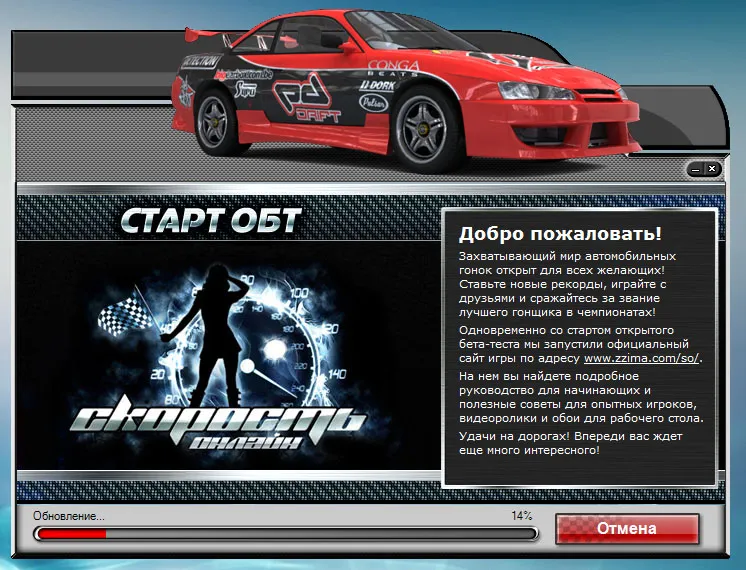 01 июля 2009 года компания Nival Network объявила о начале открытого бета тестирования гоночного симулятора "Скорость Онлайн". Для начала игры достаточно бесплатно зарегистрироваться на портале и скачать клиент, после чего присоединиться к тысячам других гонщиков. Собственно что я и сделал вчера. Перед началом игры я зашел на портал и кратко прочитал про что игра.