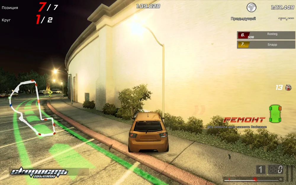 Итак начало гонки, в режиме от первого лица, гонять мне не понравилось, переключился сразу на третий