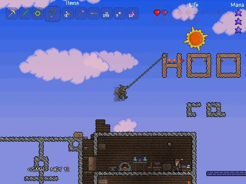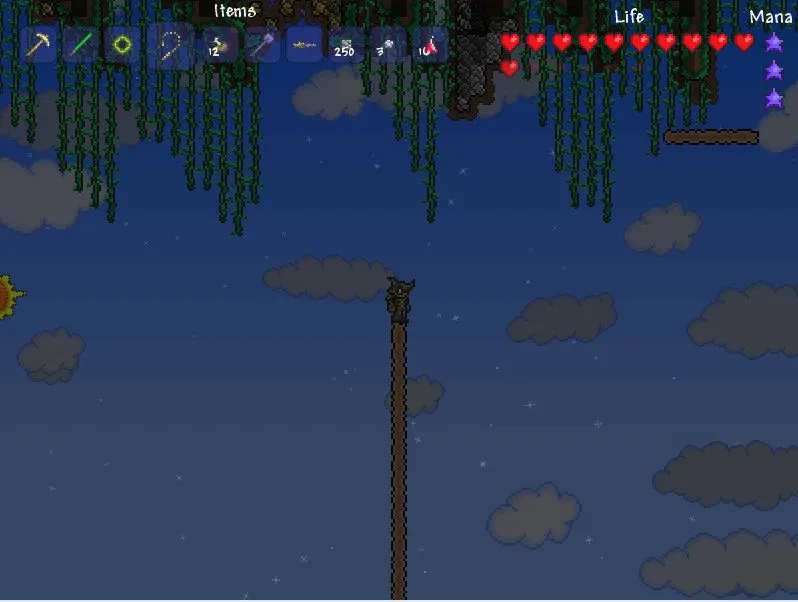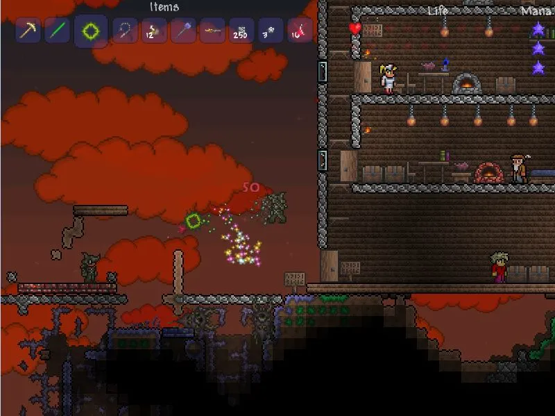 Ещё одной особенностью игры является огромное количество оружия, аксессуаров и других интересных предметов. Что-то можно скрафтить, что-то можно найти. Вы обязательно подберёте себе оружие на свой вкус, будь это световой меч или же огромный демонический молот, а возможно даже и пулемёт. К слову здесь есть даже магия и оружия, которым она необходима для работы. Чтобы получать много-много маны, ночью лучше не проходить мимо падающих звёзд. Помимо огромного выбора среди оружий есть и огромный выбор среди аксессуаров. Каждый из которых даёт вам какой-то дополнительный бонус, к примеру двойной прыжок или же возможность не разбиться даже от самого сильнейшего падения. Здесь есть огромное количество разнообразной брони из самых различных материалов, начиная от медной и заканчивая адской. Предметов здесь настолько много и они настолько разнообразны, что уже хотя бы из-за этого вам будет не скучно играть.