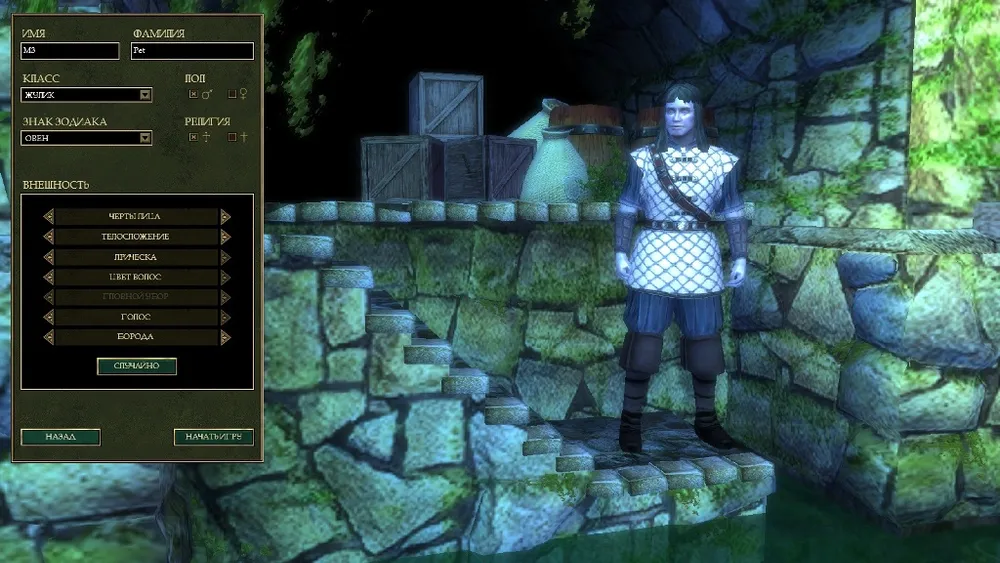 Распределяете очки опыта, создаете внешность, выбираете религию (протестантизм или католичество), выбираете класс (об этом ниже) и вперед!