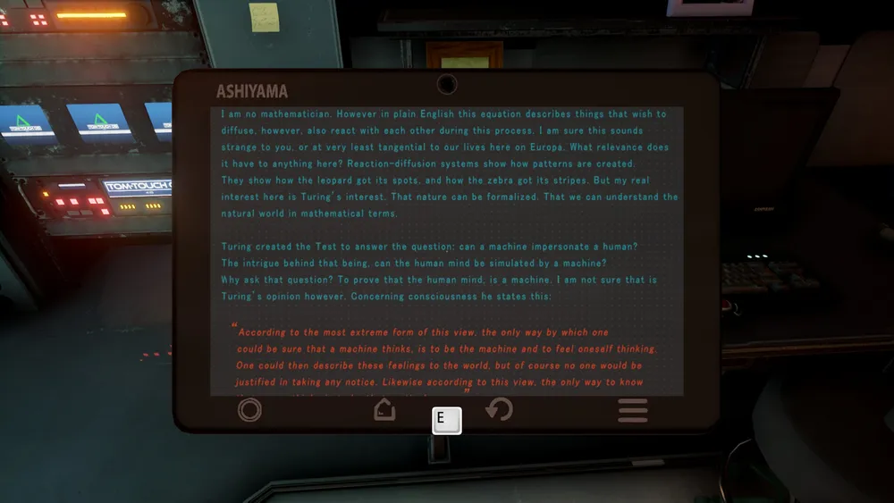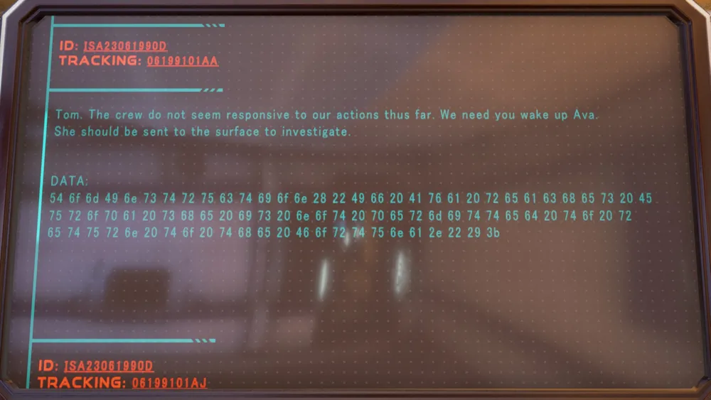 В комнате еще одного биолога - доктора Сойчи Юи, наткнемся на его переписку с Агентством. Суть которой сводится к следующему: на Европе нашли жизнь – вирусы, адаптированные к огромной радиации на ее поверхности. Некоторые из них способны регенерировать собственные ДНК.
