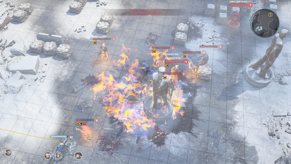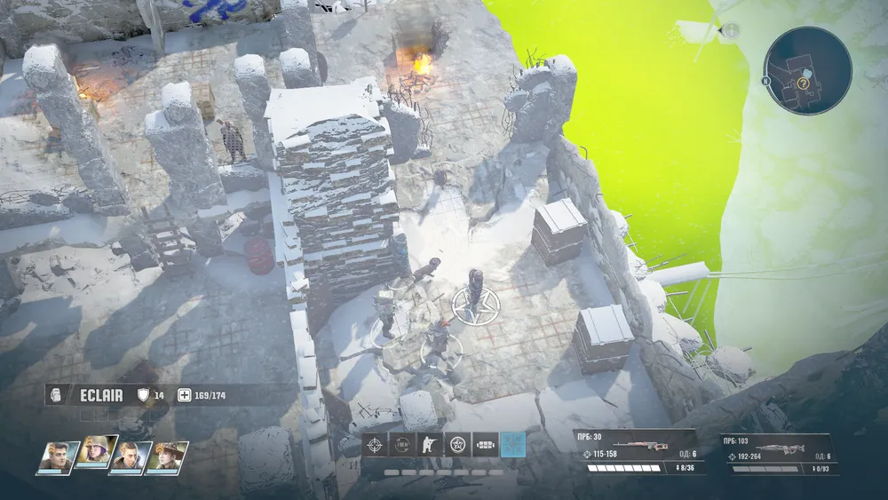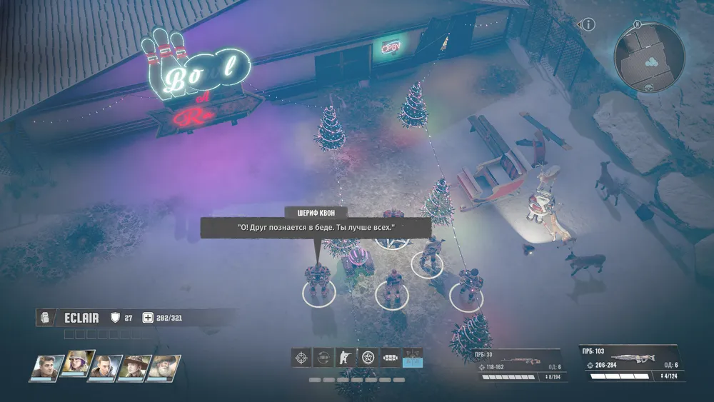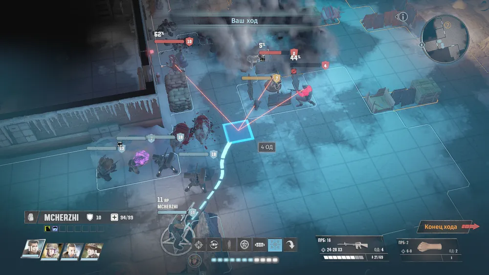 Фишка которую я оценил - возможность менеджмента очков хода. Если вы не знаете что делать, то можно пропустить ход, с сохранением action point на следующий ход, встать в глухую оборону с увеличением уклонения в зависимости от очков действий, а можно активировать «режим охраны», атакуя приближающихся соперников. Плохо то, что в режиме охраны персонаж стреляет всего один раз, независимо сколько очков действий у вас осталось.